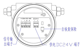 供電:DC24V 1A 信號輸出:4-20mA, RS-485(MODBUS) 自恢復保險:2A, 貼片5×3mm |