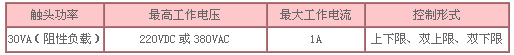 ● 接點裝置電氣參數及控制形式